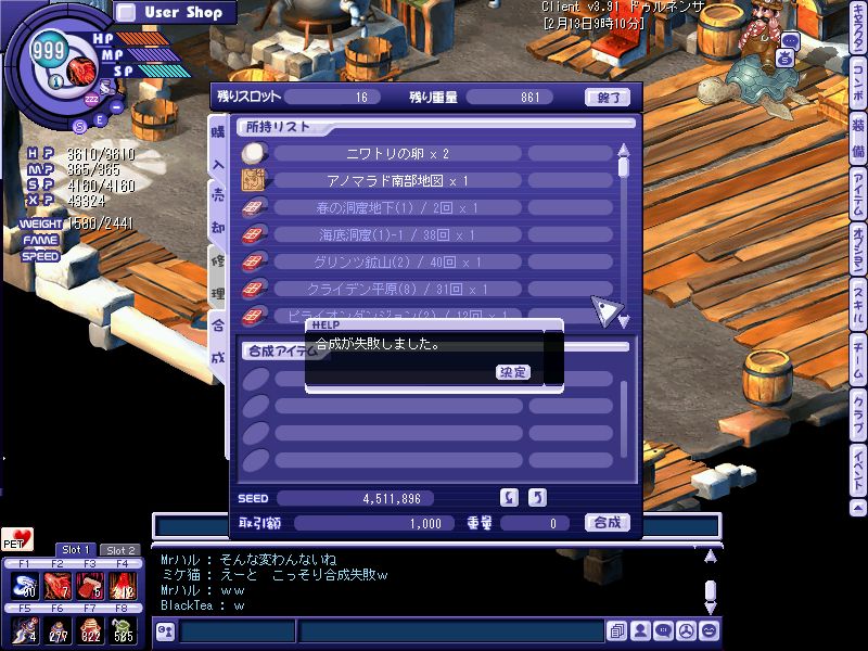 クラブの皆さんのおかげで楽に材料を手に入れ、いざ合成(´・ω・`)